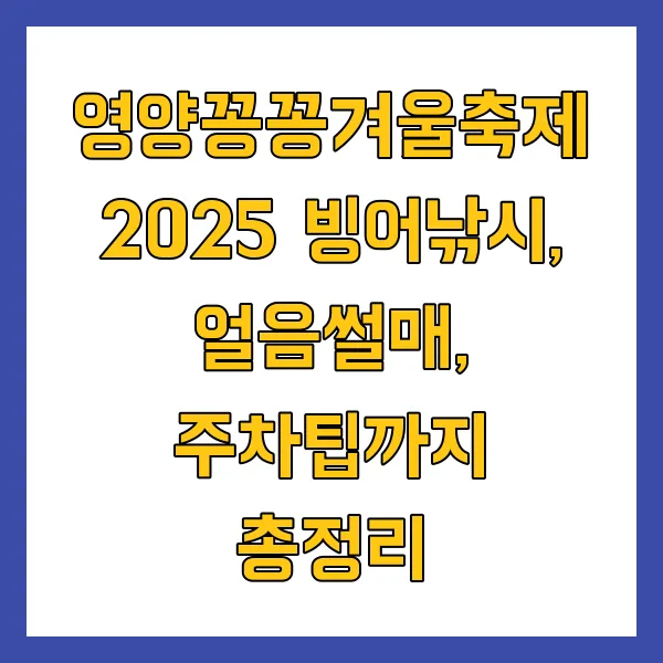 경북 영양의 겨울 명소, 영양꽁꽁겨울축제가 2025년에도 여러분을 찾아옵니다! 짜릿한 빙어낚시부터 신나는 얼음썰매, 아찔한 눈썰매까지! 다채로운 겨울 체험과 맛있는 먹거리, 편리한 주차 팁까지, 완벽한 겨울 축제를 위한 모든 정보를 여기에서 확인하세요! 영양꽁꽁겨울축제, 겨울 추억 만들기 딱 좋은 곳이죠! 얼음낚시, 겨울축제, 가족여행, 영양여행 등의 키워드로 검색하시면 더 많은 정보를 찾아보실 수 있습니다.