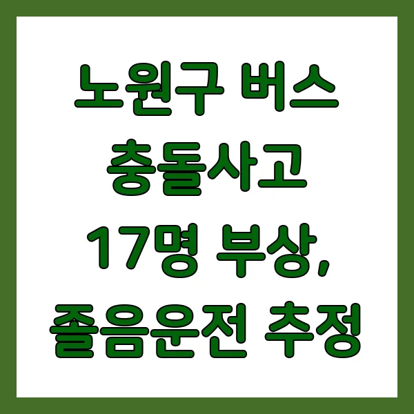2025년 2월 9일 오전 11시경, 서울 노원구 하계동에서 시내버스가 가로수와 충돌하는 사고가 발생했습니다. 안타깝게도 17명의 승객이 부상을 입었으며, 그 중 3명은 중상입니다. 현재까지 사망자는 없지만, 경찰은 버스 기사의 졸음운전 가능성에 주목하고 있습니다. 이 사고는 대중교통 안전에 대한 경각심을 다시 한번 일깨워주는 사건입니다.
