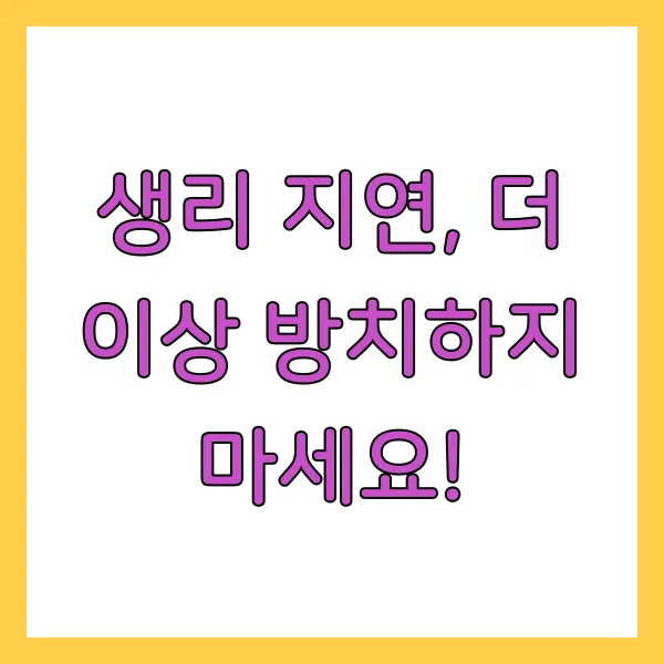 생리는 여성 건강의 중요한 지표입니다. 단순히 귀찮고 불편한 현상으로 여기지 말고, 자신의 몸에 귀 기울여야 합니다. 생리 지연이 잦다면 전문의와 상담하여 정확한 원인을 파악하고 적절한 치료를 받는 것이 중요합니다. 꾸준한 지압과 건강한 생활 습관을 통해 생리 주기를 바로잡고 건강하고 활기찬 삶을 누리세요!