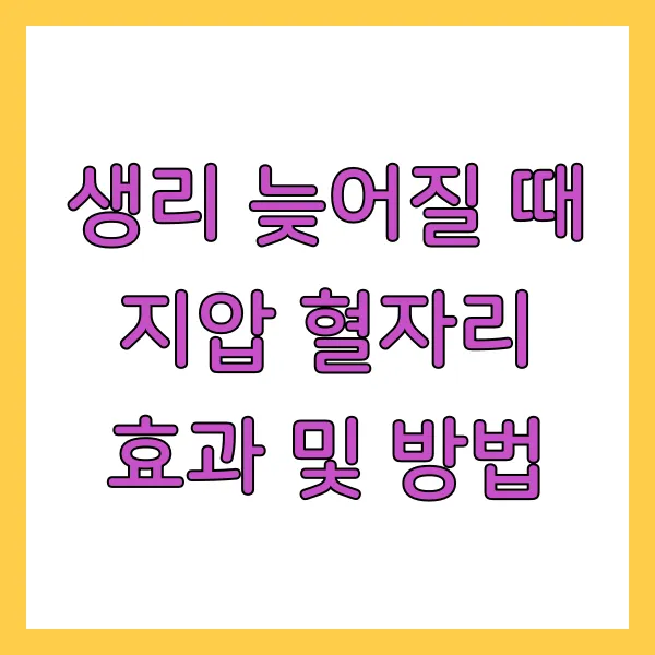 여성이라면 누구나 한 번쯤 겪는 생리 지연! 혹시 나도 임신?! 아니면 건강에 문제가 있는 걸까? 별별 생각에 마음이 뒤숭숭하죠? 스트레스, 수면 부족, 급격한 체중 변화 등 다양한 원인으로 생리가 늦어질 수 있지만, 그럴 때 간단하지만 효과적인 방법이 바로 지압입니다. 지압은 몸의 기혈 순환을 촉진하고 자궁 건강을 도와 생리 주기를 정상화하는 데 도움을 줄 수 있습니다. 지금부터 생리 늦어질 때 효과적인 지압 혈자리와 그 방법을 자세히 알려드릴게요!