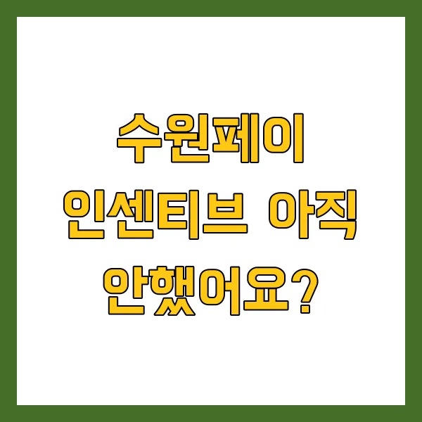 - 다양한 이벤트 : 수원시는 명절, 특정 기간 등에 인센티브 지급률을 높이거나 추가 혜택을 제공하는 이벤트를 진행하여 수원페이 사용을 장려하고 있습니다. 수원시청 홈페이지 및 경기지역화폐 앱을 통해 이벤트 정보를 확인하고 더 큰 혜택을 누려보세요.