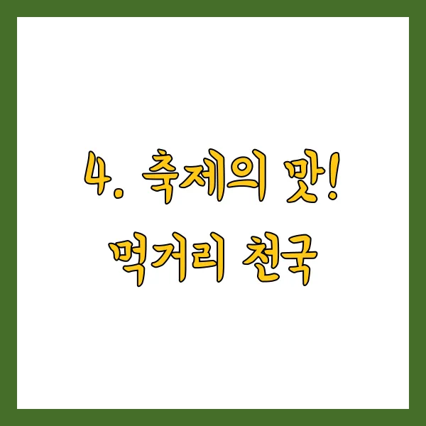 | 주차 | 축제장 입구 및 내부 주차장 이용 가능 (주차 요원 배치) | 주말 및 공휴일에는 혼잡 예상 |