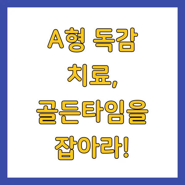 A형 독감 예방접종은 독감 예방에 가장 효과적인 방법입니다. 세계보건기구(WHO)와 질병관리청에서는 매년 유행할 것으로 예상되는 바이러스를 포함한 독감 백신 접종을 권장하고 있습니다. 특히 만 65세 이상 어르신, 만성 질환자, 임산부, 영유아 등 독감 고위험군은 예방접종을 통해 심각한 합병증을 예방하는 것이 중요 합니다. 예방접종은 독감 유행 시기(보통 10월~4월) 이전에 미리 맞는 것이 좋습니다. 건강은 미리미리 챙겨야죠!